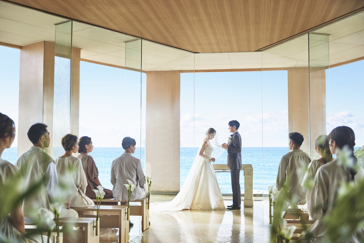 東シナ海とやんばるの絶景を一望できるオリエンタルホテル 沖縄リゾート&スパでは、1日2組限定のプライベート挙式をご案内。
