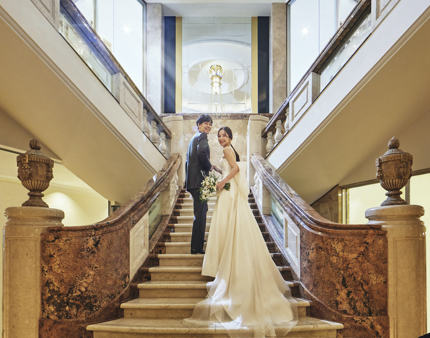 当日の思い出がしっかり残せる大階段&ホテル内撮影。