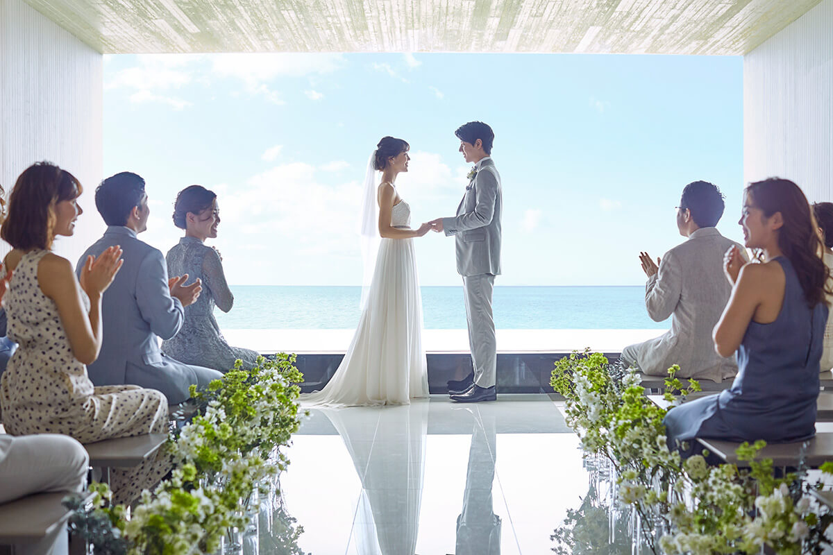 2017年3月、沖縄恩納村にグランドオープン! チャペル「ブルーインフィニティー」の窓からは青い海が一面に広がり、最高のリゾートウェディングが実現します。料理の鉄人で有名な坂井シェフ監修のカジュアルフレンチレストラン「イル・ド・レ」で大切なゲストにおもてなしを。一軒家を貸切れるので、当日はお2人とゲストだけのプライベート空間。特別な1日をお過ごしいただけます。