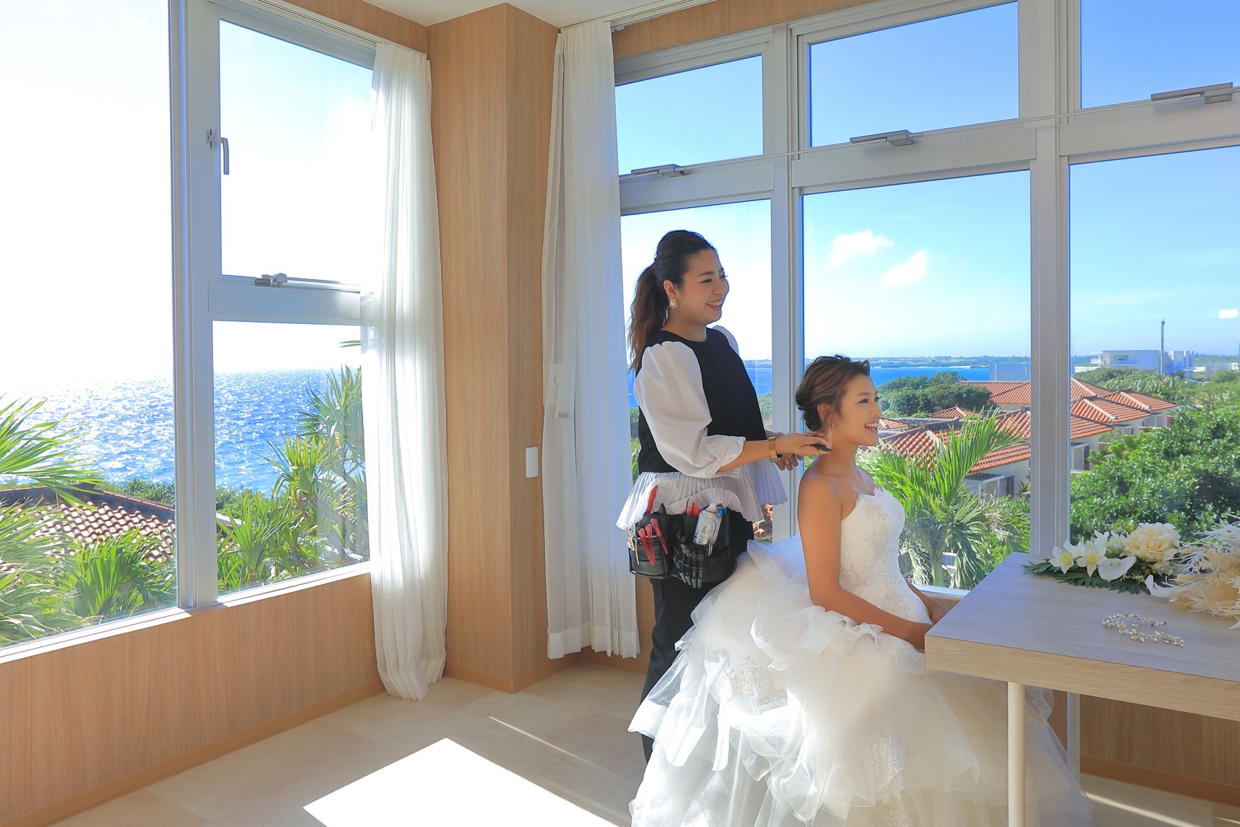 - 新婦様お支度を整えるメイクルーム 海を見ながらの時間は心もしっかりと落ち着きます
