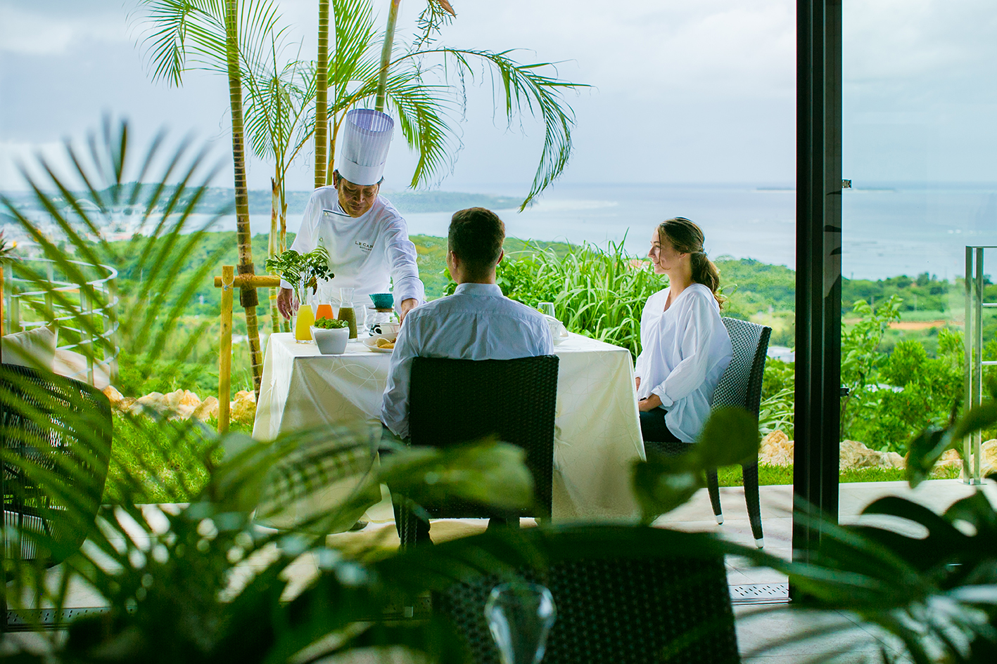 滞在中の食事は専属のシェフが希望の時間に合わせて用意。人生の一大イベントを優雅な気持ちで迎えることができ、まさに夢心地のウエディングが叶います。