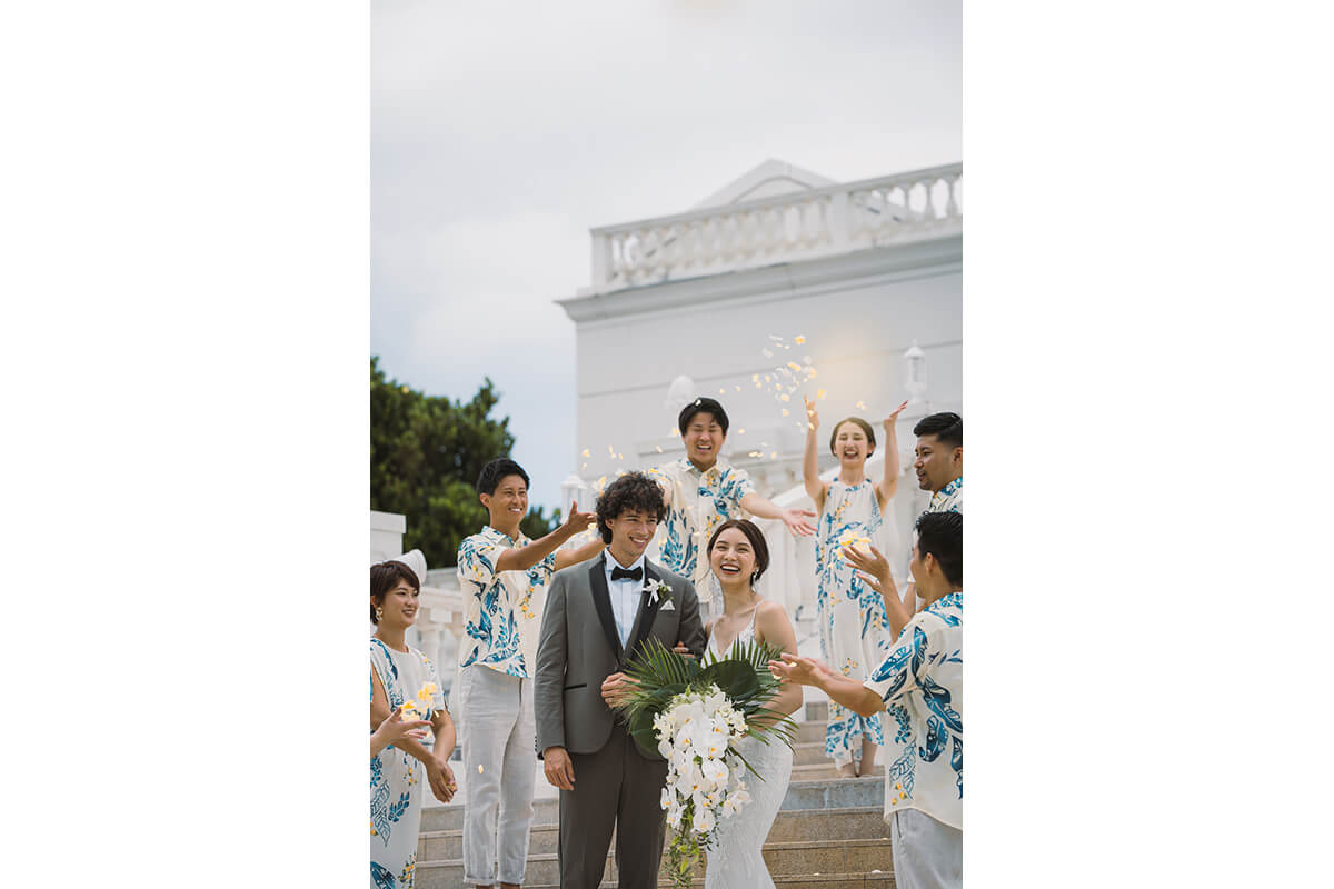 Your dream of a private wedding surrounded by the ocean and sunlight will come true in the resort town, Chatan.