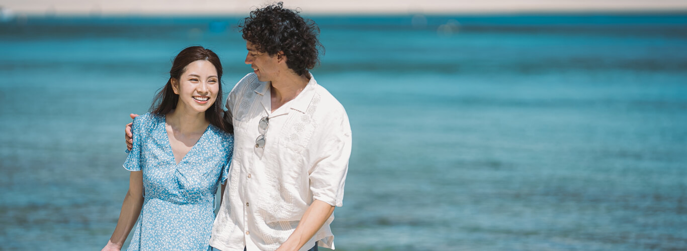 サンゴ礁が広がる海をはじめとした豊かな自然や、琉球の時代から続く伝統文化。沖縄は、沖縄でしか生まれ得なかった魅力に満ちている。ハネムーンではその多彩な魅力を、二人でたっぷり体験しよう。マリンスポーツを楽しんだり、地元の食材をふんだんに使った沖縄料理を作ったり。そのどれもが、ハネムーンをさらに彩ってくれる。