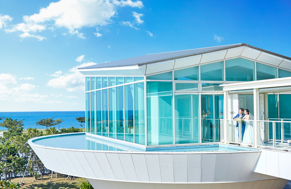 공항에서 남쪽으로 약 20분, 오키나와 본섬에서 공항과 가장 가까운 리조트에서 채플 웨딩이 가능합니다.