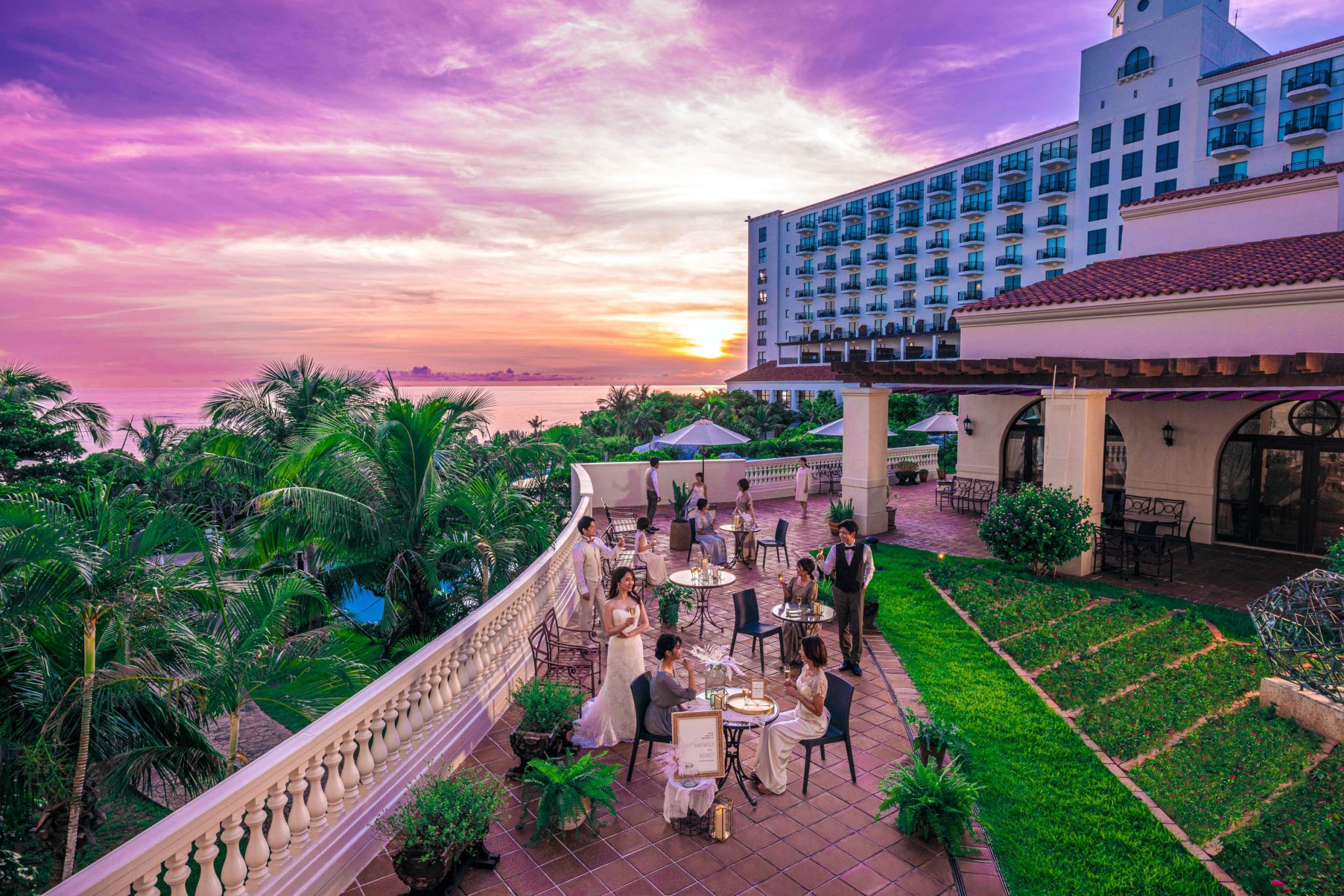 신성한 채플 웨딩 외에도, 햇살과 요미탄 바다를 가까이에서 느낄 수 있는 개방감 넘치는 가든 세리머니가 새롭게 선보입니다.