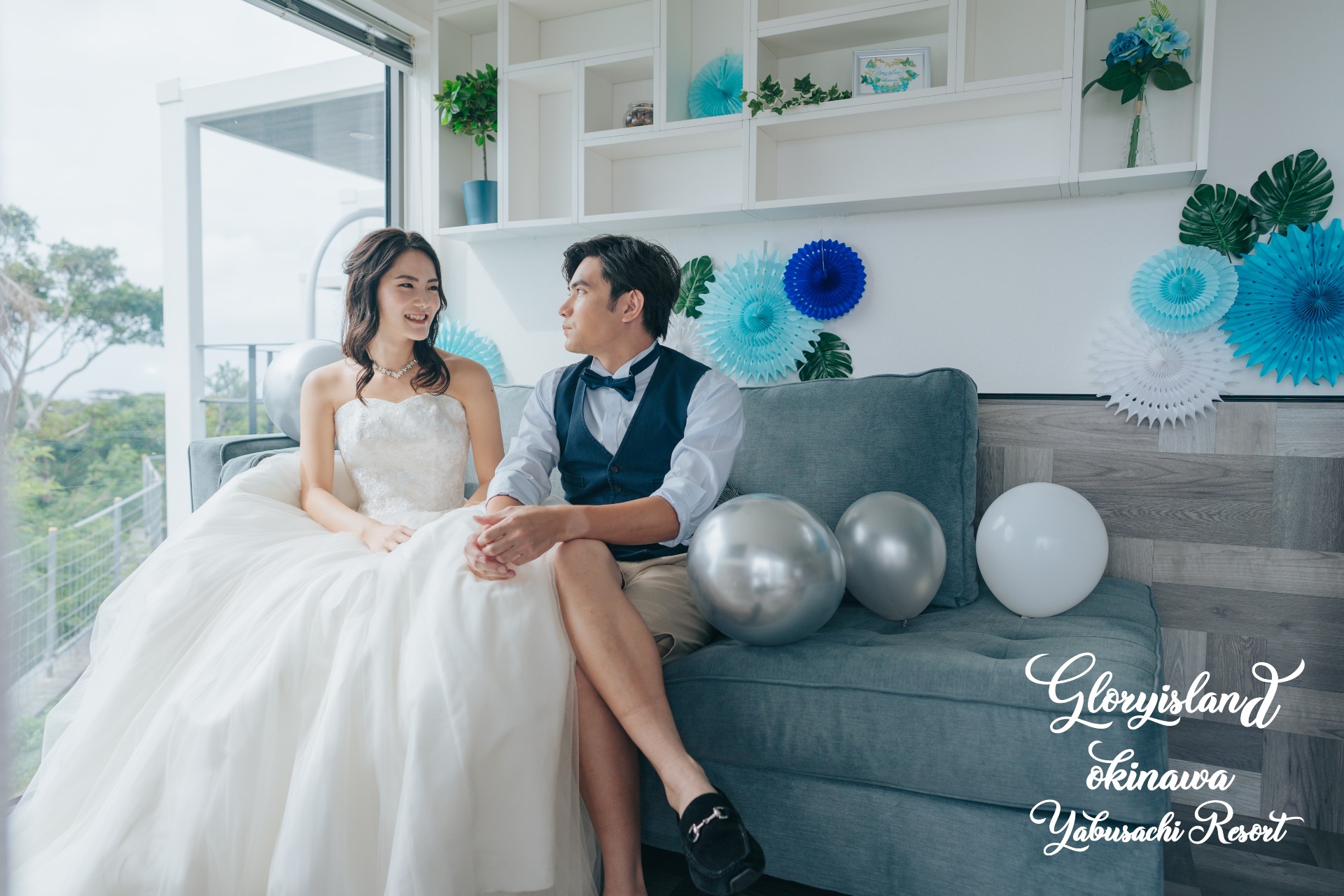 - リクエストに応じて、オプションでカフェの隣の宿泊施設『Glory island okinawa - Yabusachi Resort』で挙式が可能です。