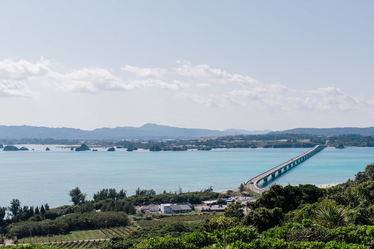 青い海と空に包まれた古宇利島の景色は、