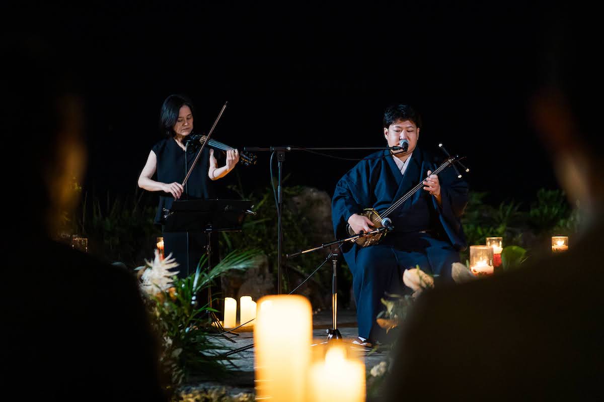 沖縄の夜の空気とともに流れる音色が、その場の時間をやさしく包み込みます。